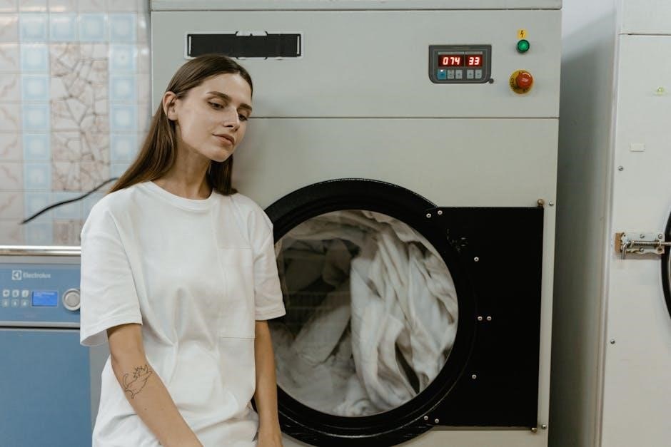 Never attempt to repair the dryer yourself; contact a qualified technician for assistance. Improper repairs can lead to dangerous situations. Always follow the manufacturer’s instructions for safe and efficient operation.